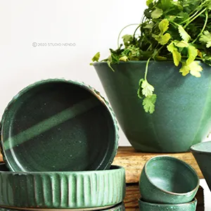 I ordered the fluted bowl in small size. Love the imperfections on it and the blue glaze. It’s my midnight snack bowl and I get happy everytime I eat from it. Looking forward to buying much more from Studio Nendo.