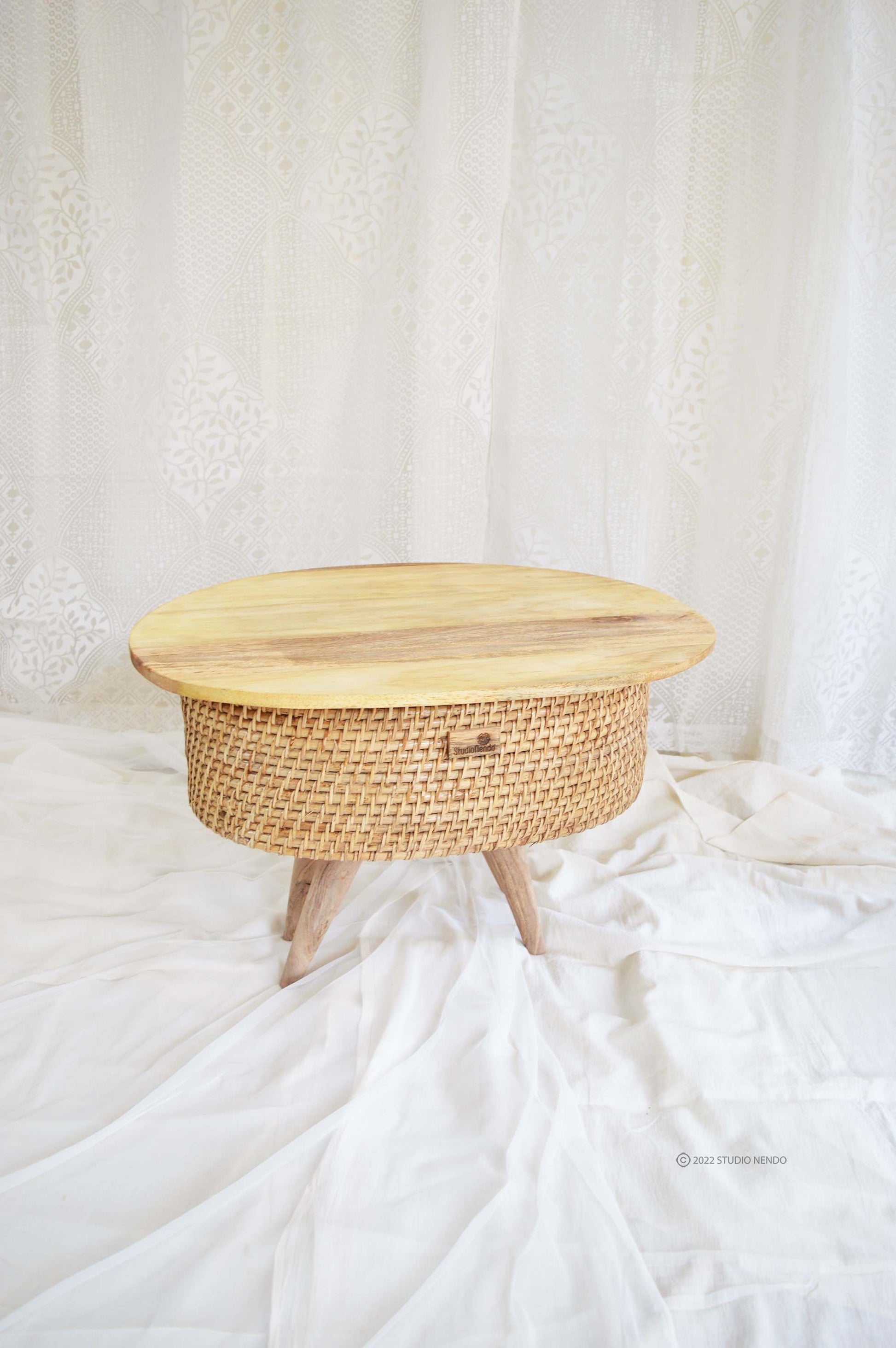 Cane Standing Storage Basket- Oval with Wooden Lid