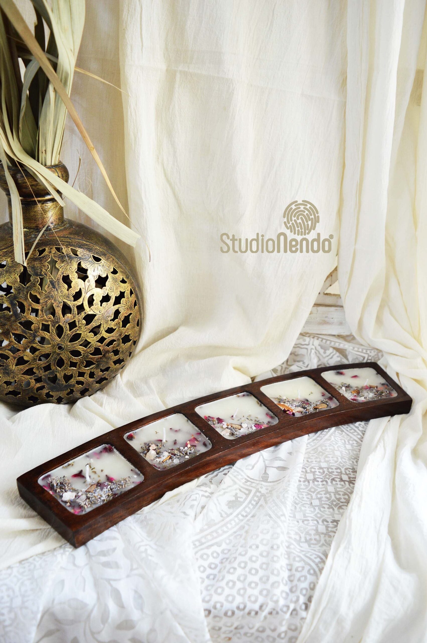CURVED WOODEN TRAY- MULTIPLE WICK CANDLE