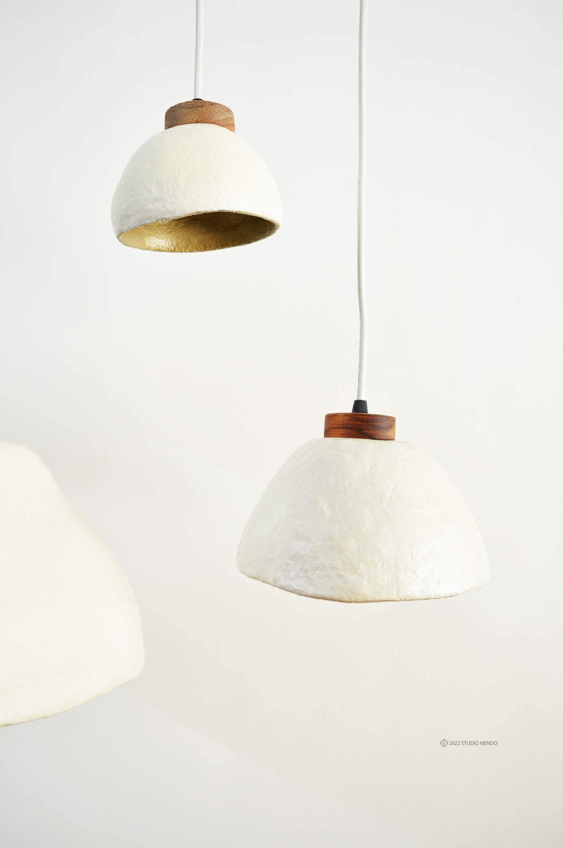 Faux Ceramic- Paper Mache Pendant Lamp- Ivory & Gold