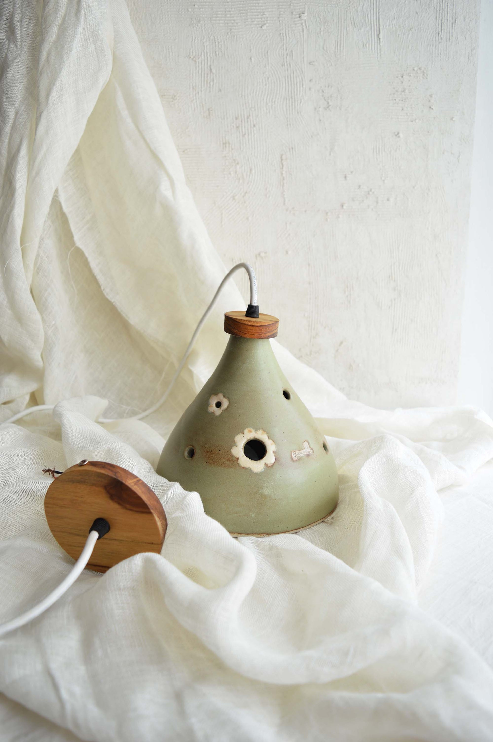 Handmade Ceramic Pendant Light- Sage Green- Made to Order
