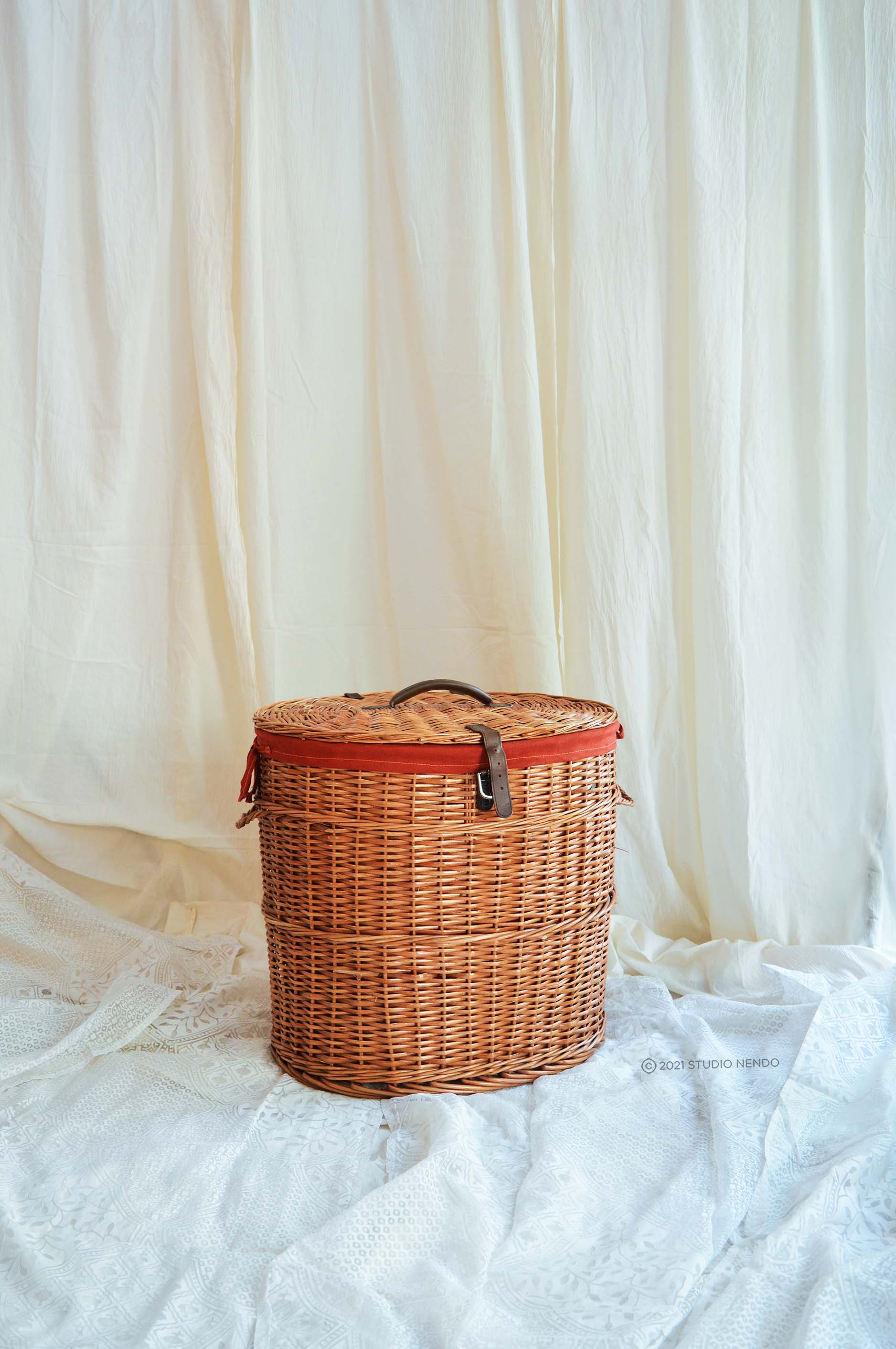 Natural Wicker Oval Laundry Basket- Scarlet