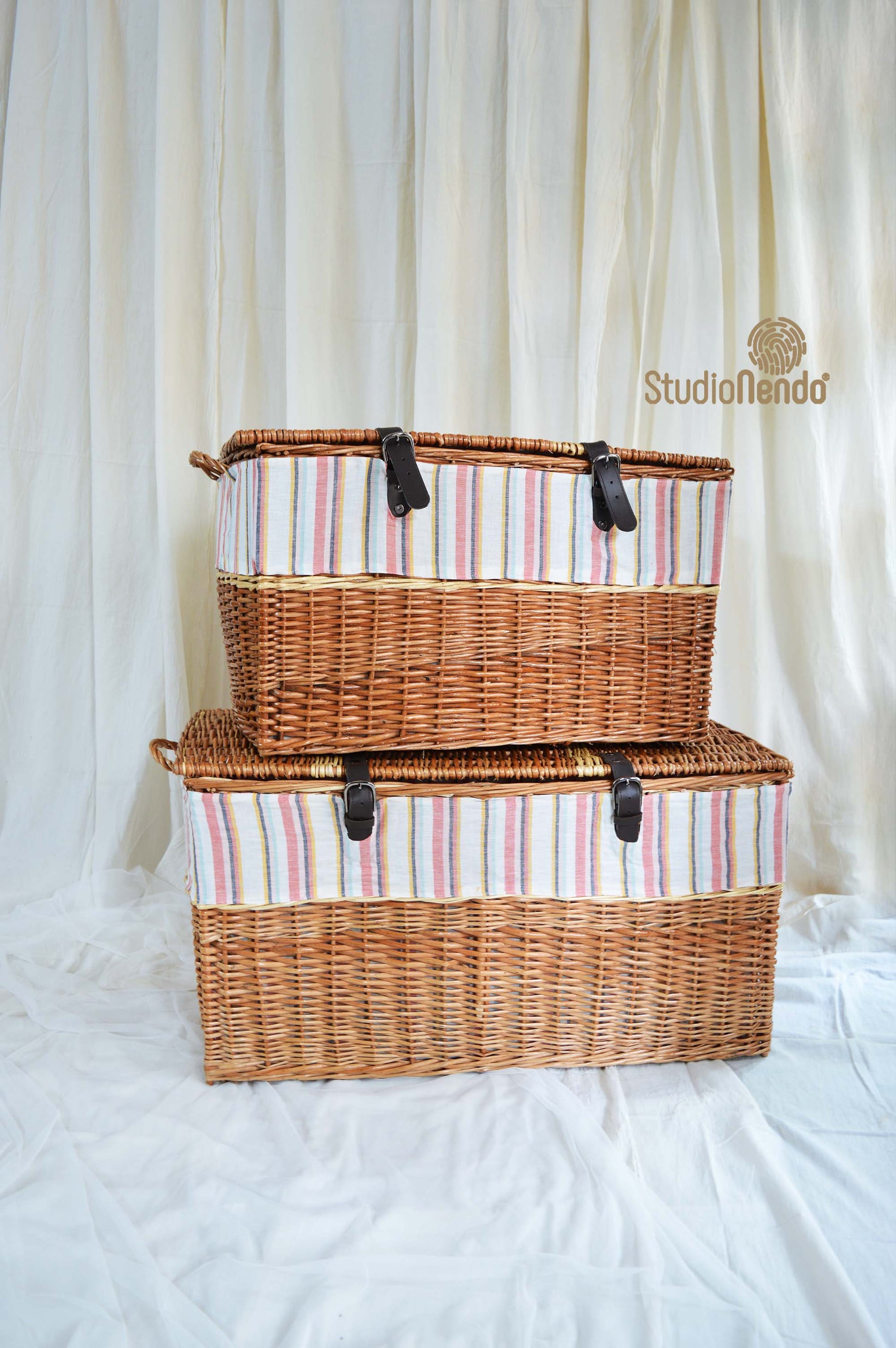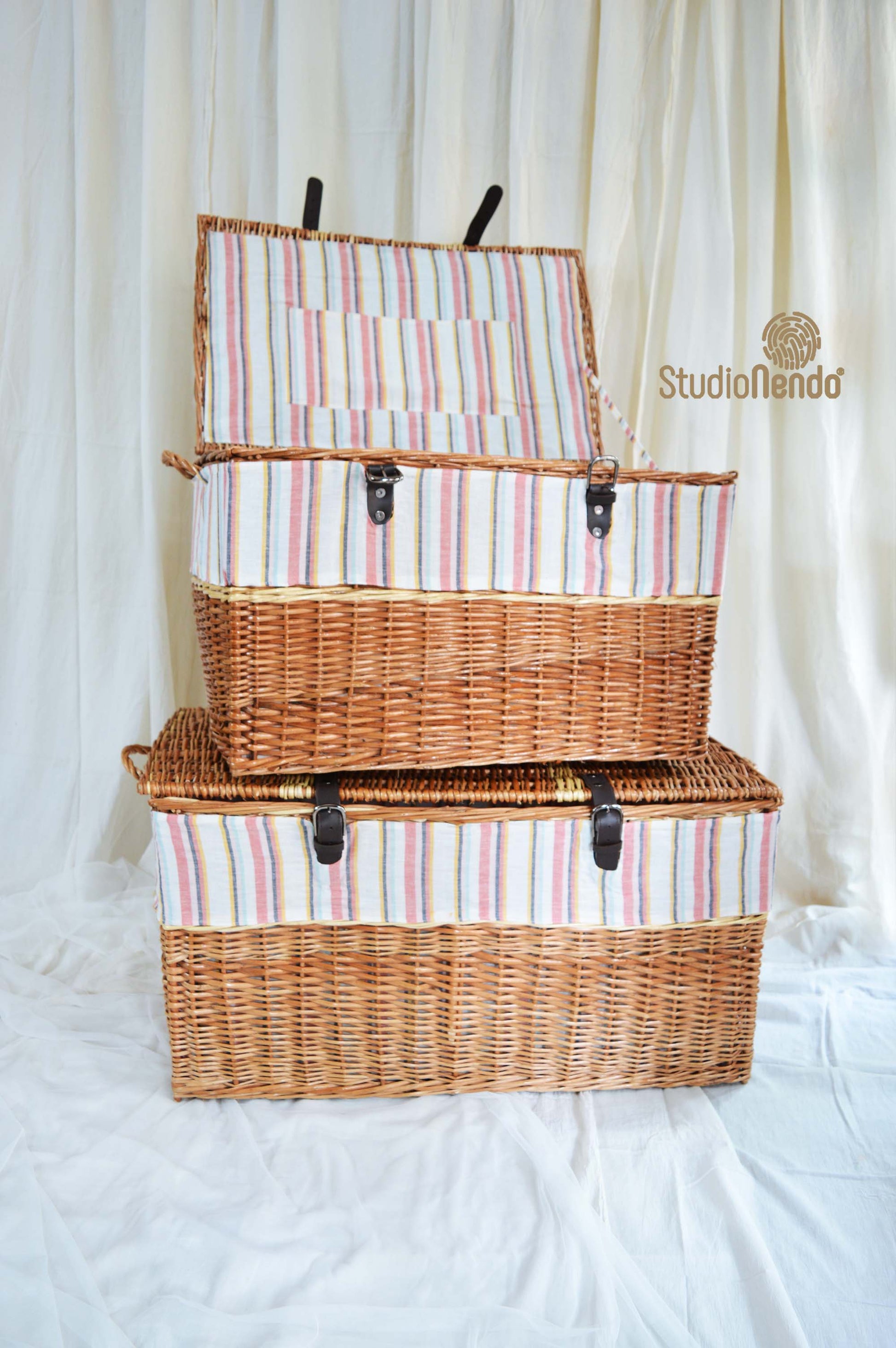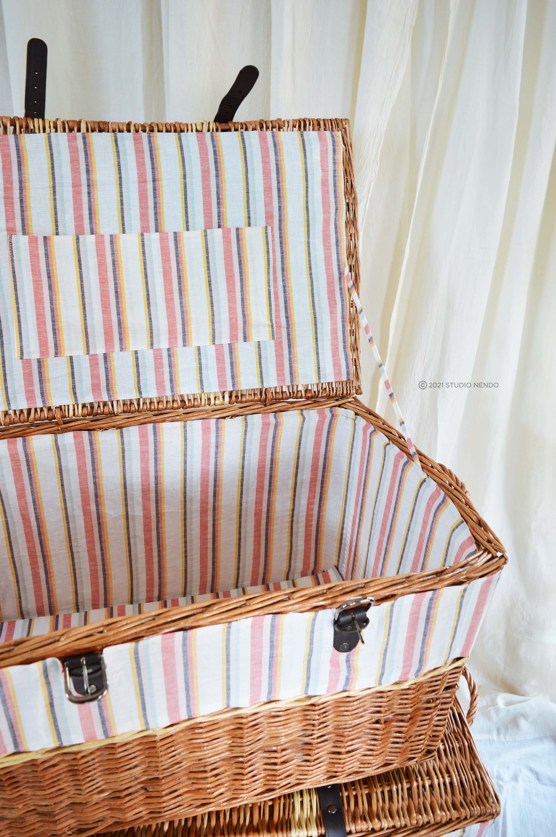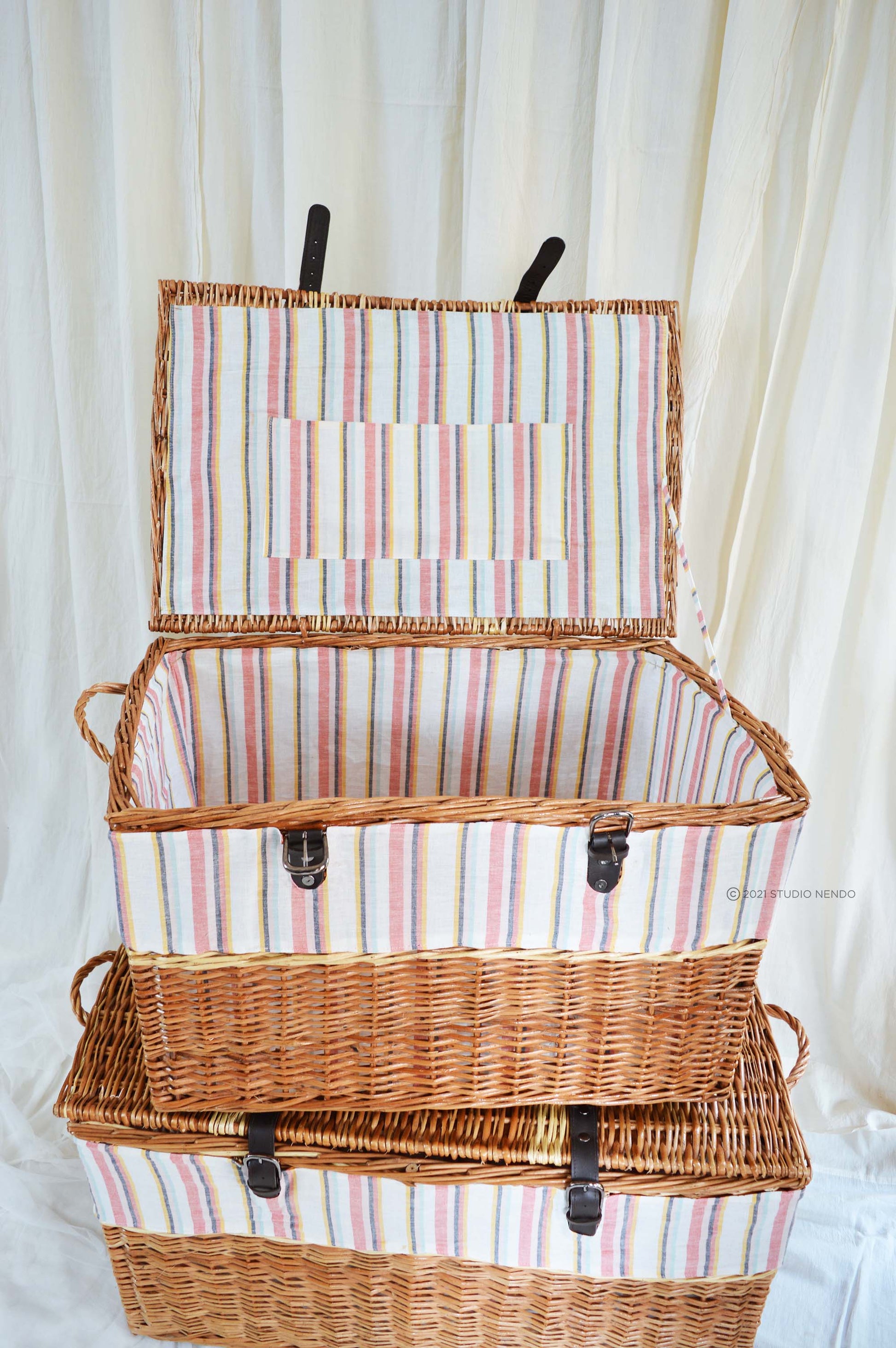 Natural Wicker Storage Trunk- Striped Pastel Linen
