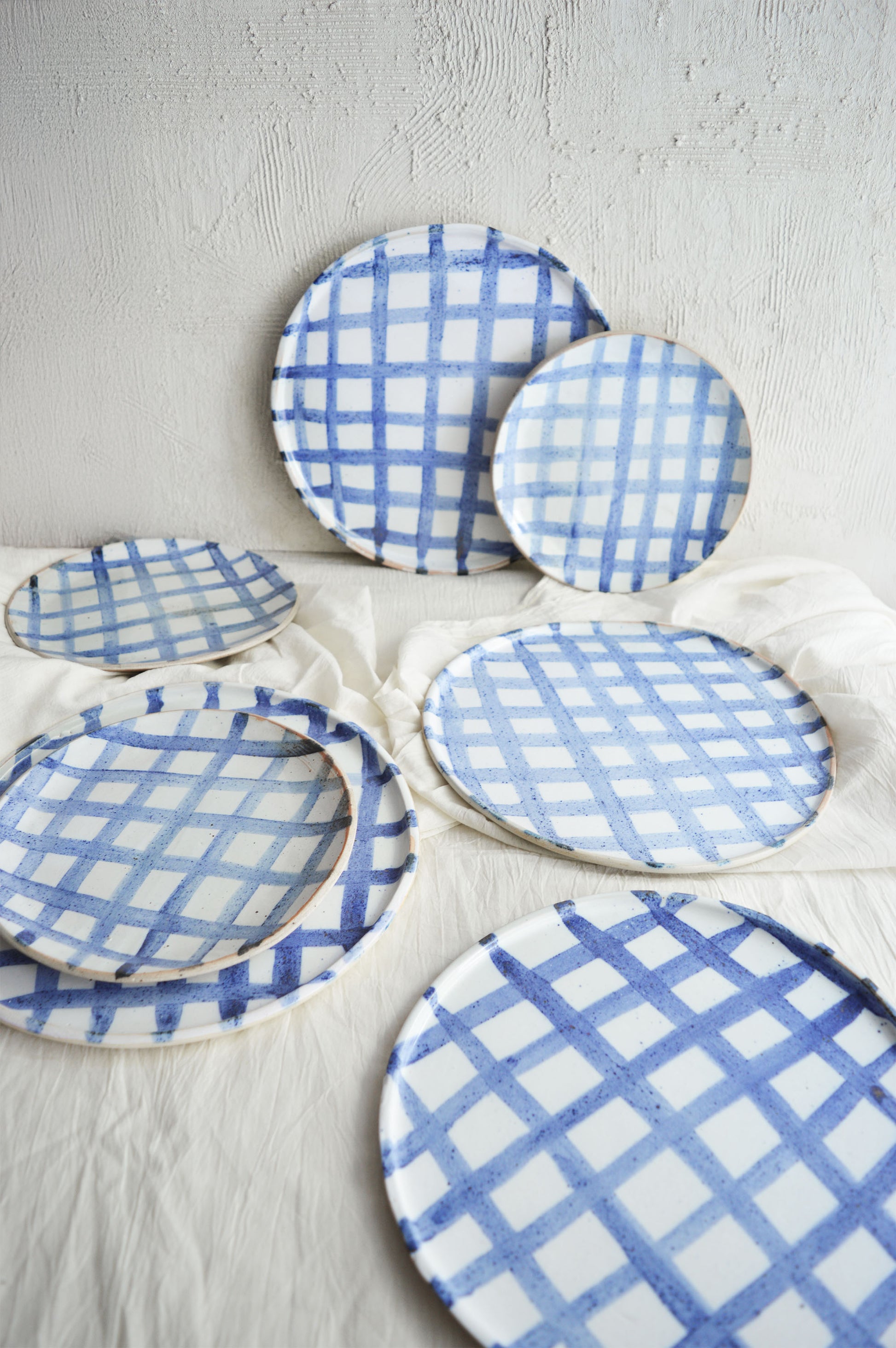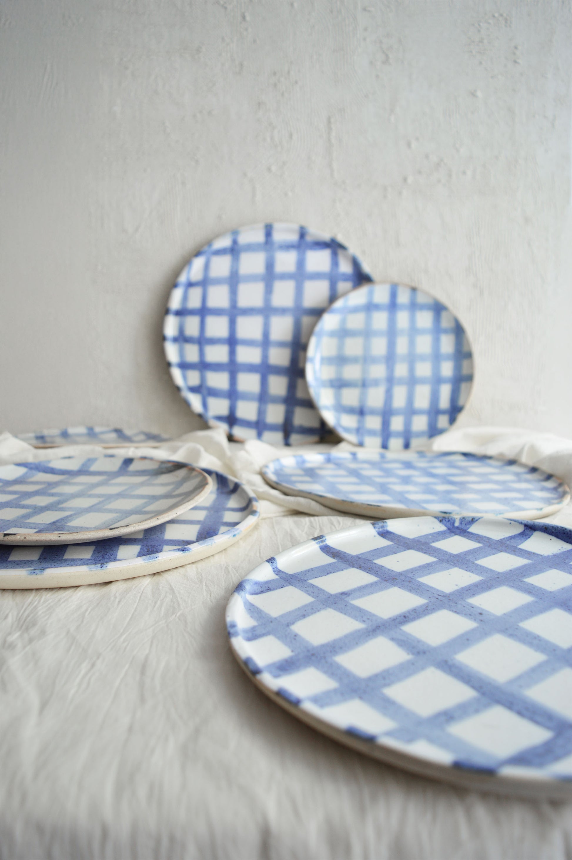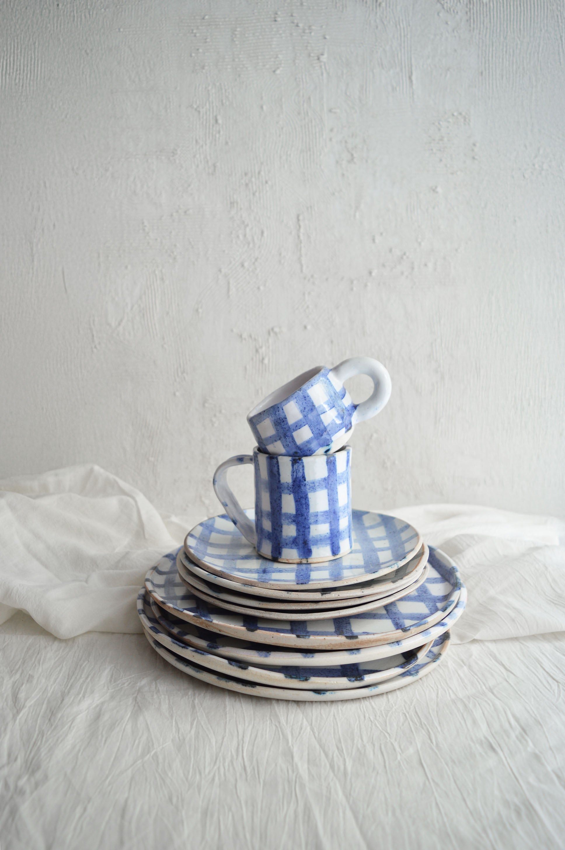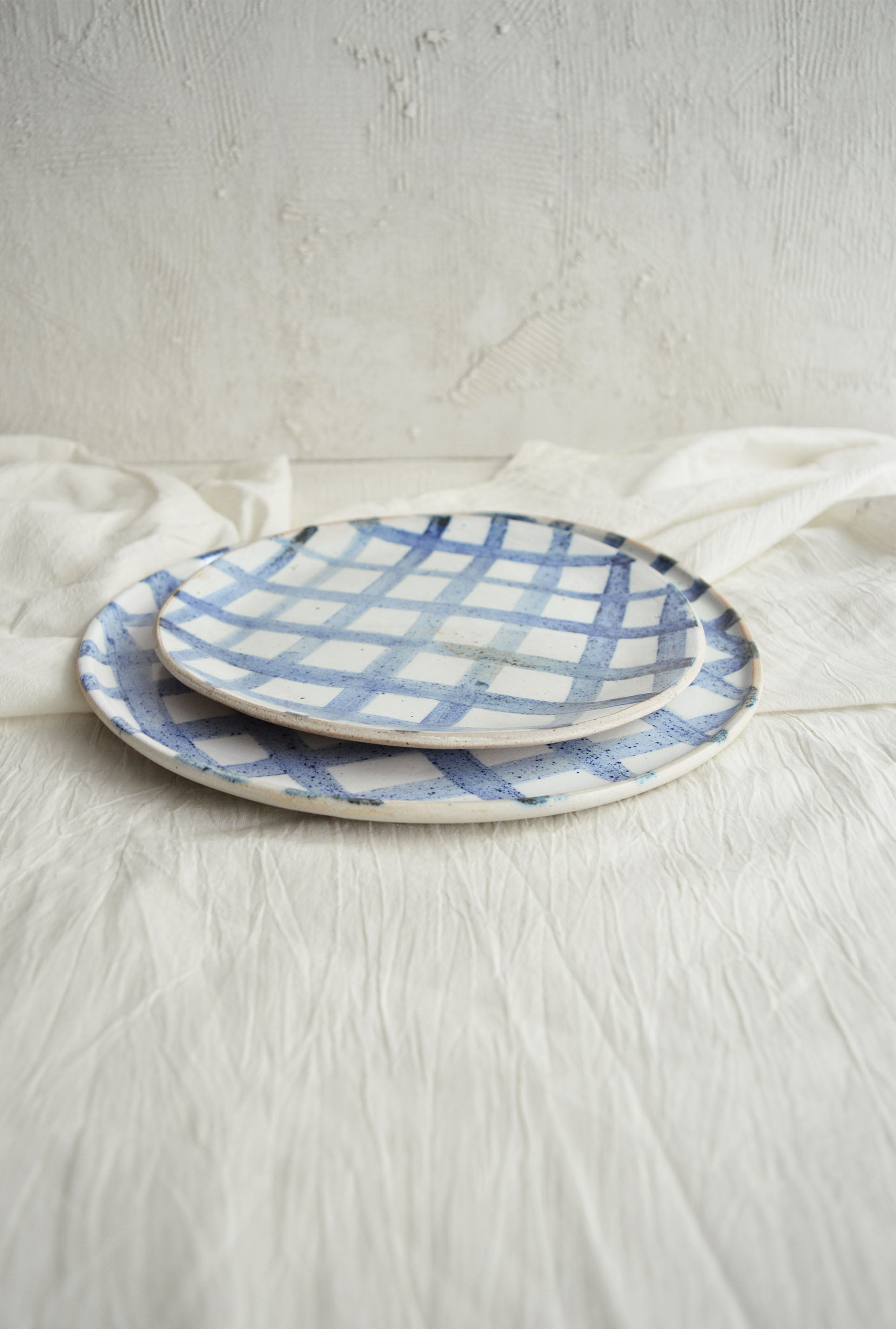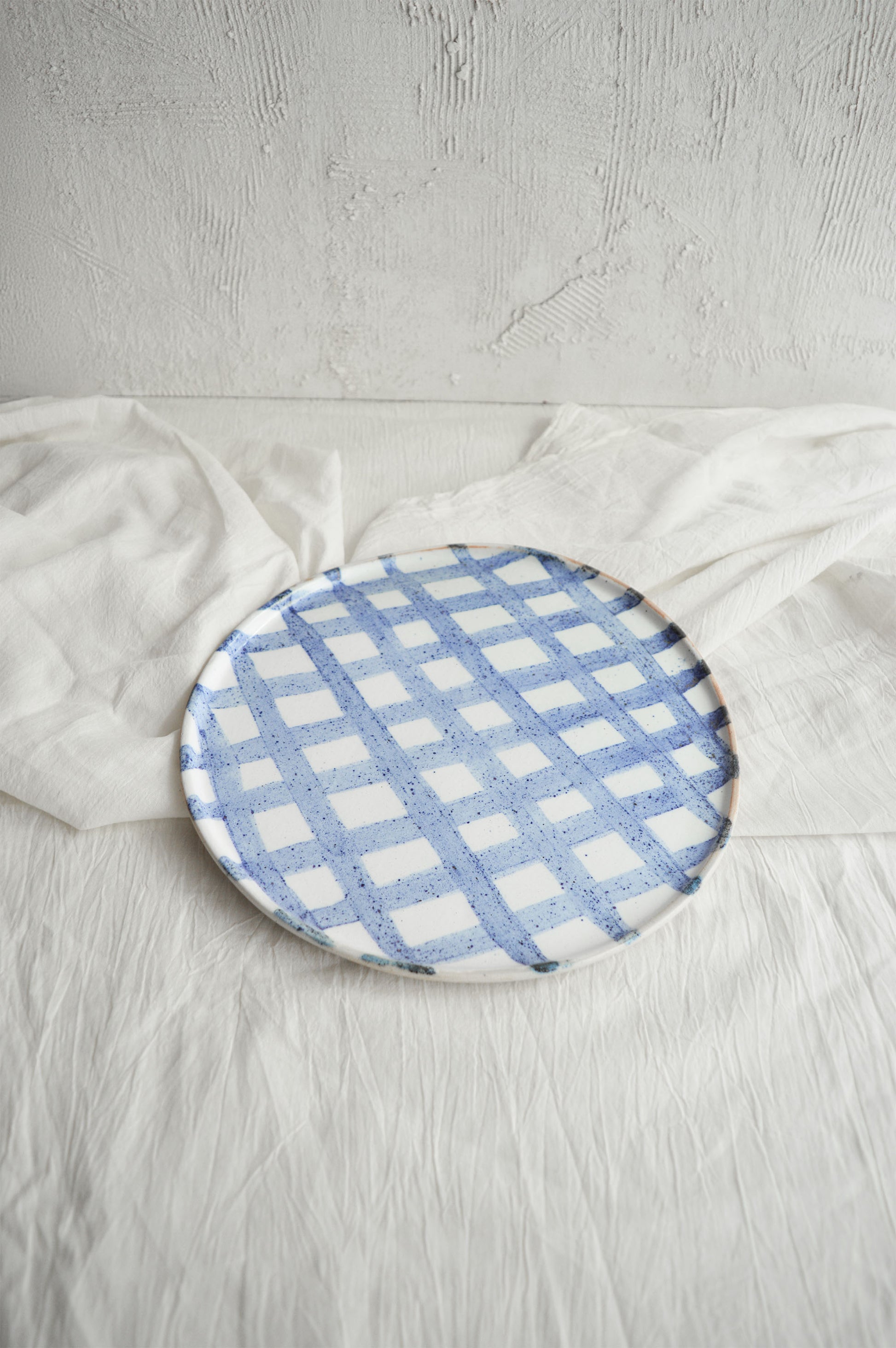 Introducing the Gingham Series, inspired by the timeless textile print we all know and love. Each plate has been meticulously hand-painted using a cobalt oxide wash, which gives the pattern its vibrant blue hue against a glossy white glaze. This collection is all about bringing a modern, handcrafted touch to a classic design, making it perfect for both everyday use and special gatherings. Each piece is a celebration of craftsmanship, with the soft brushstrokes adding a personal, artisanal feel to your table.