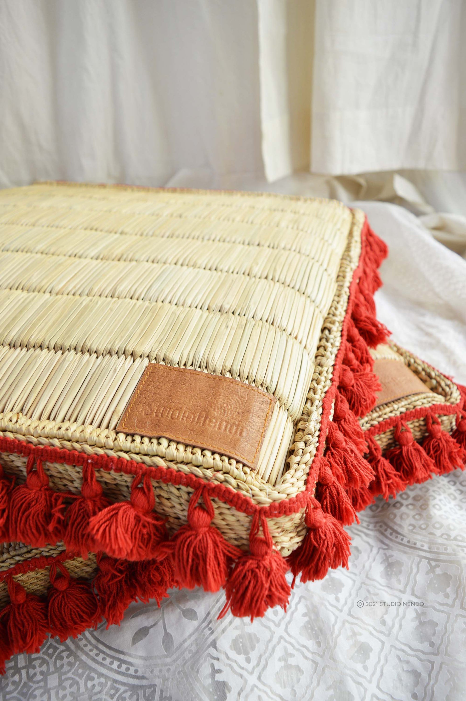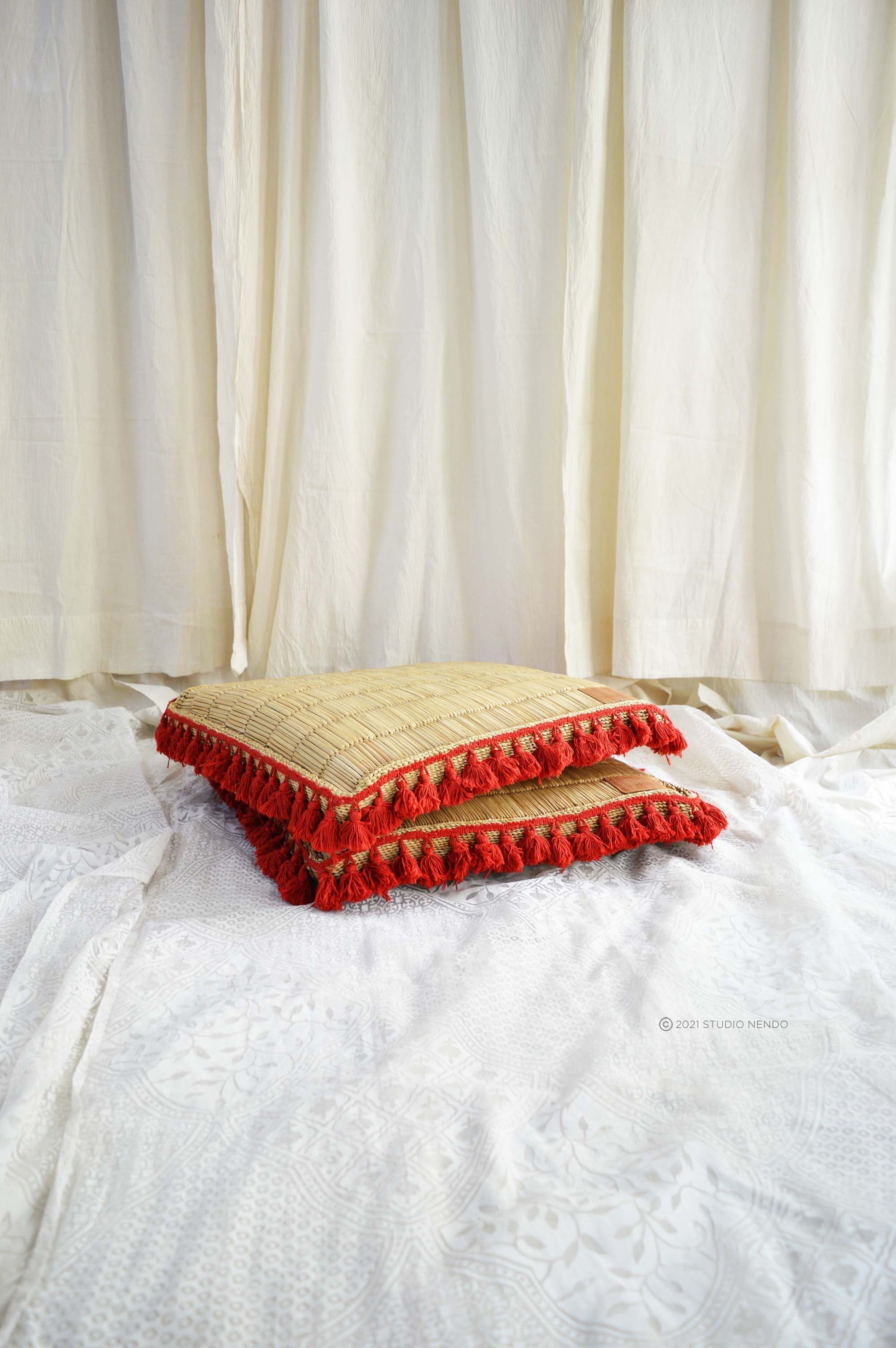 Sea Grass Floor Cushions- Set of 2- Scarlet