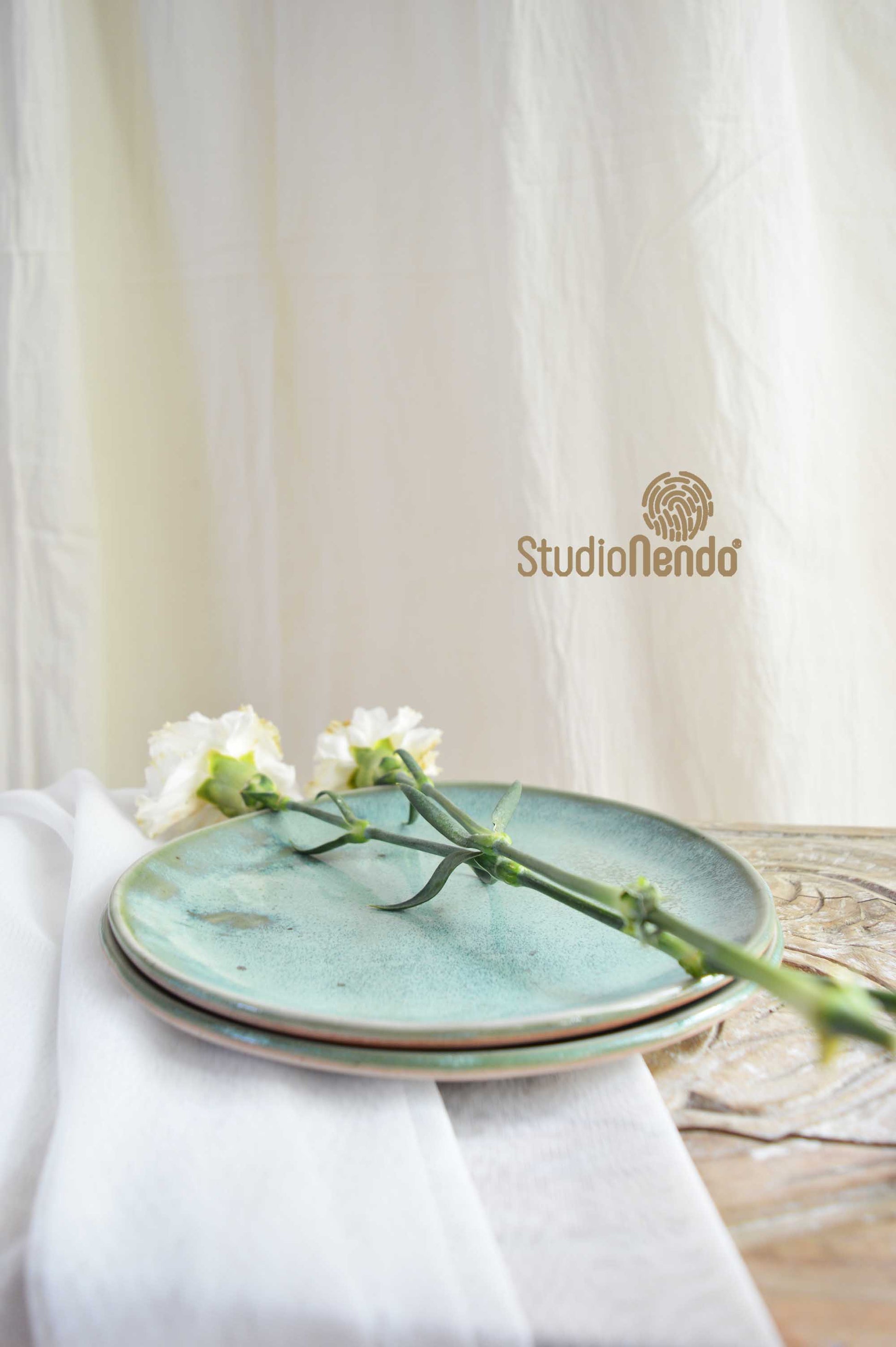 SNACK PLATES- IRREGULAR/ORGANIC- SET OF 2- MOTTLED GREEN