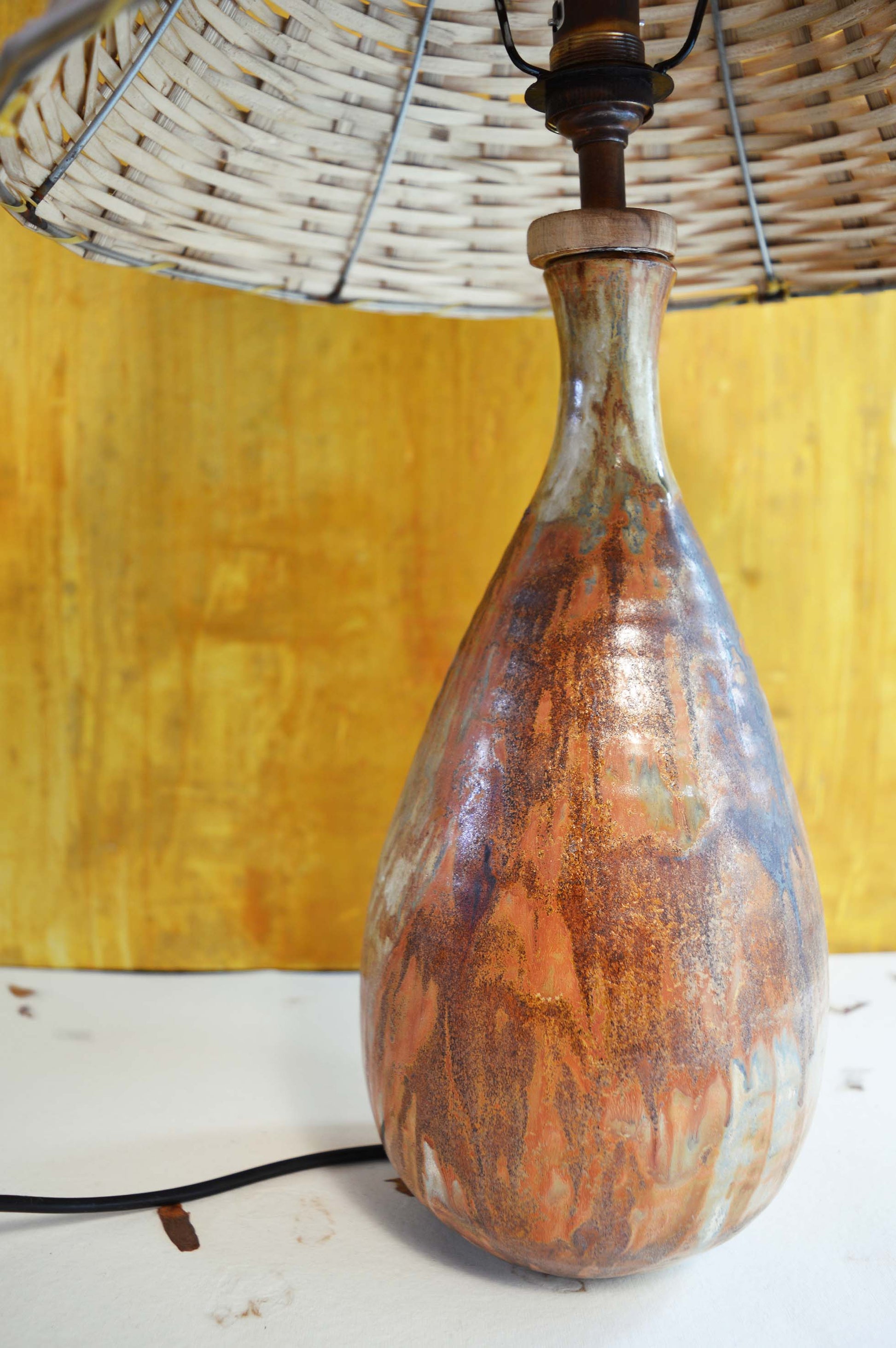 Wheel Thrown Table Lamp- Dark Shino #1