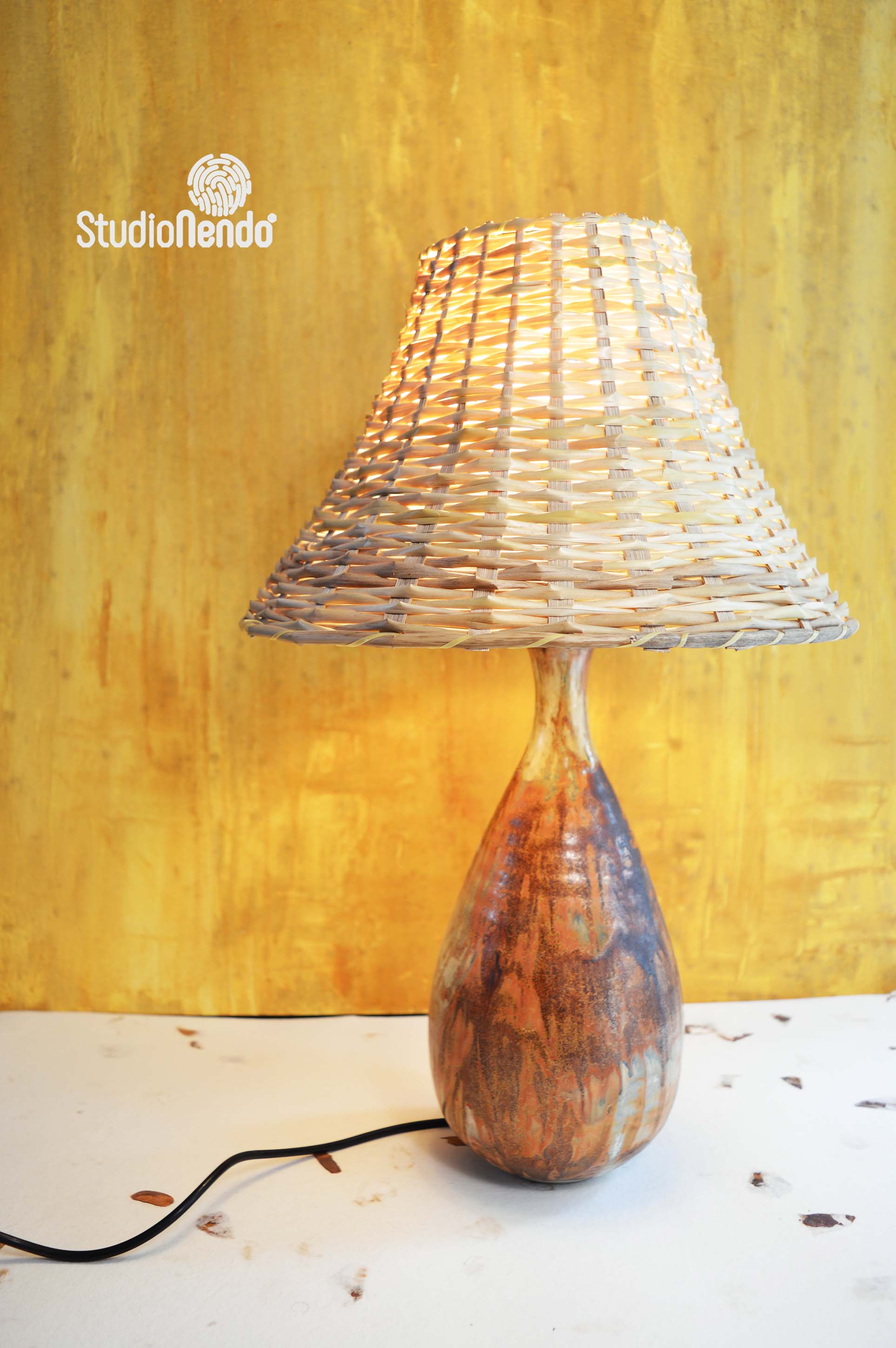 - Material: Ceramic & Cane